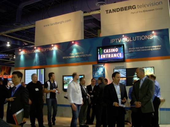 2008年4月14日的美国拉斯维加斯是一个阳光灿烂的日子。应美国广播电视协会和美国广播电视展组委会的邀请,中录公司国际商务部带领来自湖北、河北和福建广播电视台传媒机构的领导及技术工程师一行25人一同参加了全球电子通信传播媒体界最负盛名的展览会之一 —- NAB(The National Association of Broadcasters)“全美广播电视设备展”。这个一年一度的世界型电子盛会其主题是促进世界广播、电视、电影等电子通信传播媒体业的发展,并在展会上展示与传播媒体相关的通信产品、技术和服务的未来趋势,包括电视广播产品、数字音频广播、网上广播技术、音频制作、视频编辑与特技、数字资源管理与存储、电影动画制作设备、卫星与无线通信产品、互联网的应用及技术等。每年吸引来自全世界160多个国家和地区的10万多专业人士,其中1,600多家全球通信广播设备及技术的制造商和供应商将为与会者展示当今全球通信传播媒体业的最新产品。广播、电视技术、电声技术、电影、视频以及多媒体等诸多专业领域新技术和产品,使我们应接不暇,置身于现场,亲临体验世界广播电视技术的飞速发展,给我们留下了太多的感受。NAB2008是涵盖了电子传媒各个方面的唯一全球性展会,展示音频、视频所有产品的最新技术,除了数字音频广播、数字电影电视制作、数字卫星电视、卫星直播、有线电视宽带综合业务网以外,更加强了广电产品与无线网络及通信产品的结合。