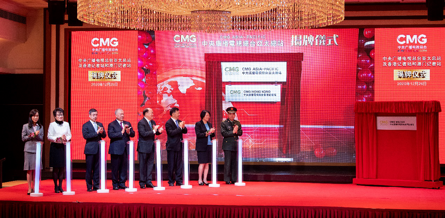 12月26日,中央广播电视总台亚太总站及下辖香港记者站和澳门记者站在香港、澳门以“云链接”方式正式揭牌成立。全国政协副主席何厚铧,澳门特别行政区行政长官贺一诚,中宣部副部长、中央广播电视总台台长兼总编辑慎海雄,中央人民政府驻澳门特别行政区联络办公室副主任张荣顺、严植婵,外交部驻澳门特别行政区特派员公署署理特派员王冬,中国人民解放军驻澳门部队政委孙文举在澳门共同出席揭牌仪式。
